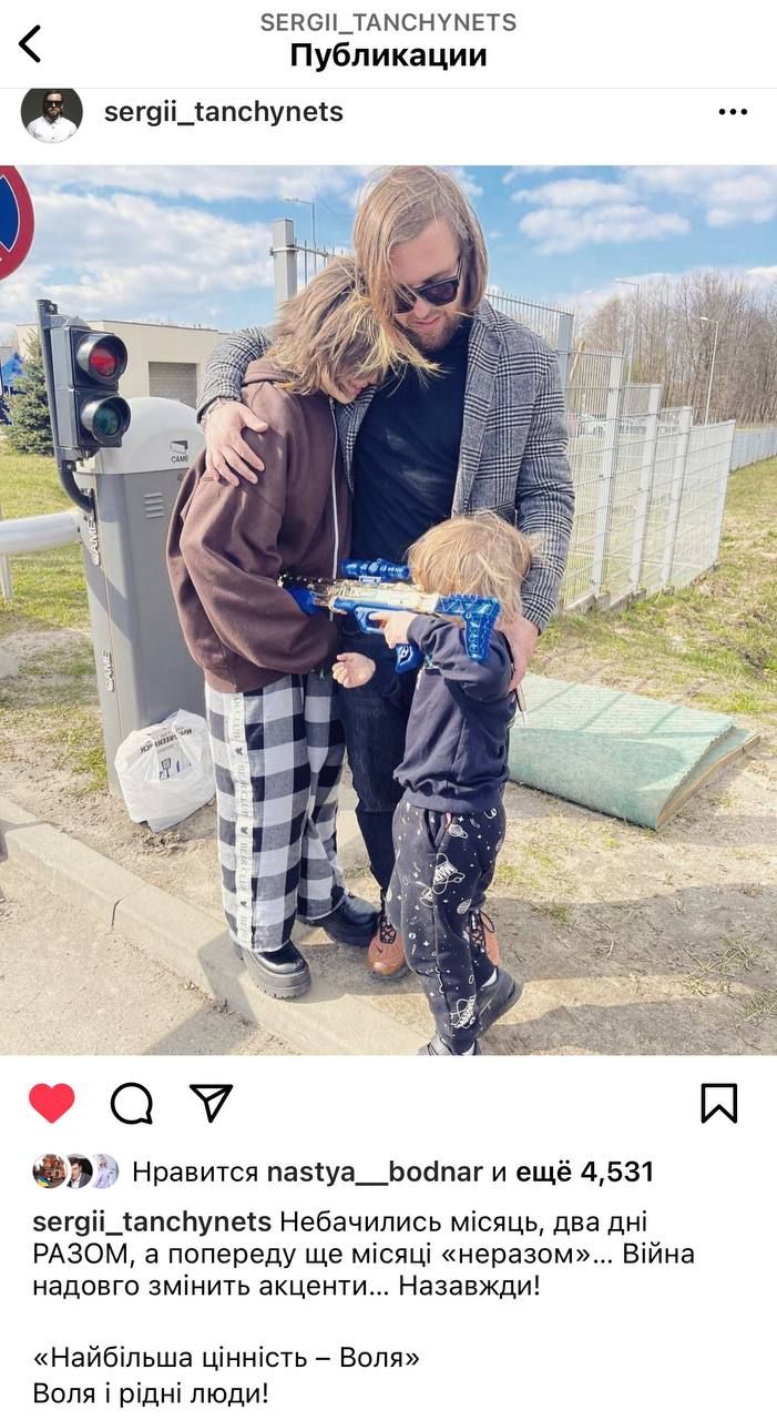 «Не бачились місяць, два дні разом, а попереду ще місяці «не разом»… Війна надовго змінить акценти… Назавжди! — підписав сімейну фотографію артист. — Найбільша цінність – Воля. Воля і рідні люди».