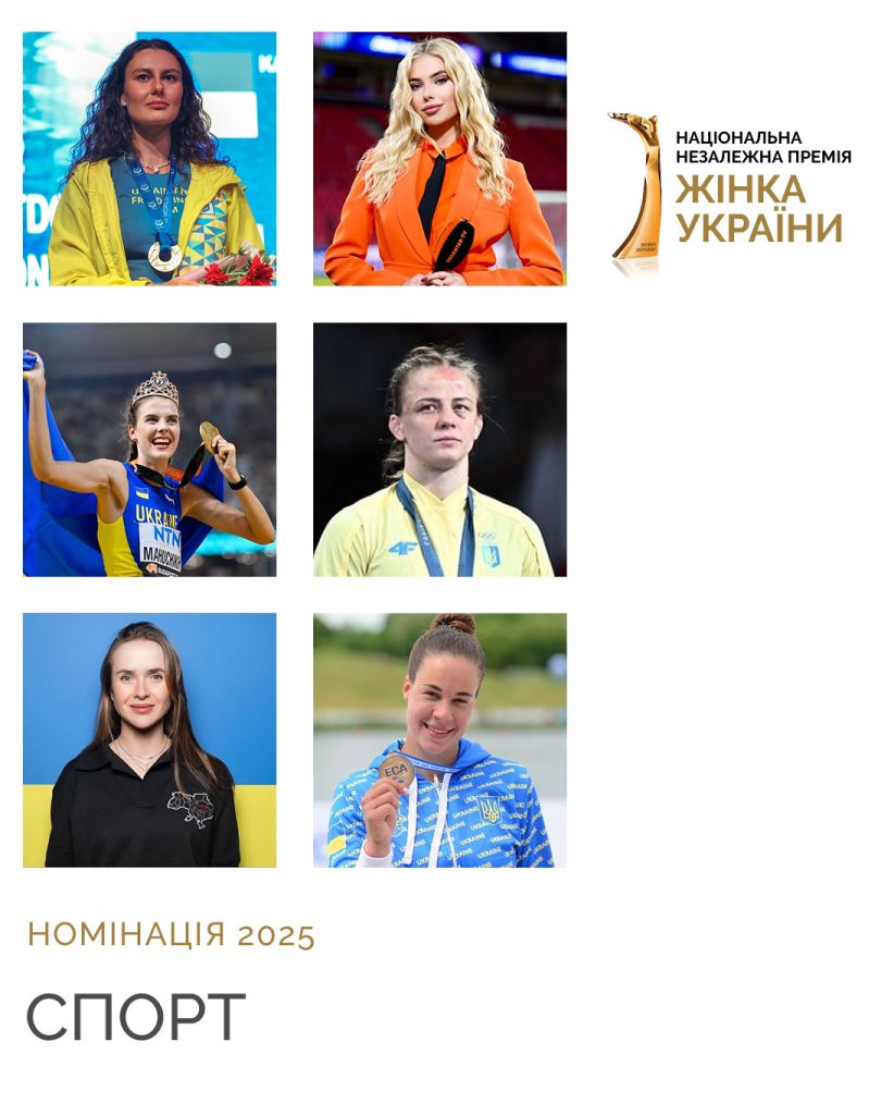 У номінації «Спорт» — легенди й нові імена: олімпійська призерка Людмила Лузан, зіркова тенісистка Еліна Світоліна, борчиня Катерина Садурська, легкоатлетка Ярослава Магучіх, спортсменка-борчиня Ірина Коляденко та спортивна журналістка Дар’я Савіна. Їхні перемоги — це не лише про спорт, а й про силу духу, витримку та честь.