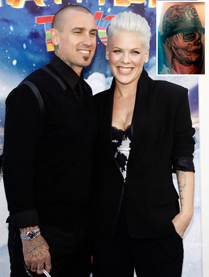 Супруг певицы Пинк, мотоциклист Кэрри Харт в 2009 году шокировал публику новой татуировкой – он вытатуировал на своей ноге лицо своей любимой жены в образе мертвеца.