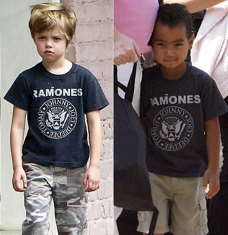К примеру на днях, когда актриса вместе с двумя дочерьми находилась в Амстердаме, на одну из прогулок с мамой Шайло Нувель надела футболку Ramones, которую носил приемный сын Джоли-Питтов, Мэдокс, когда находился в том же возрасте.