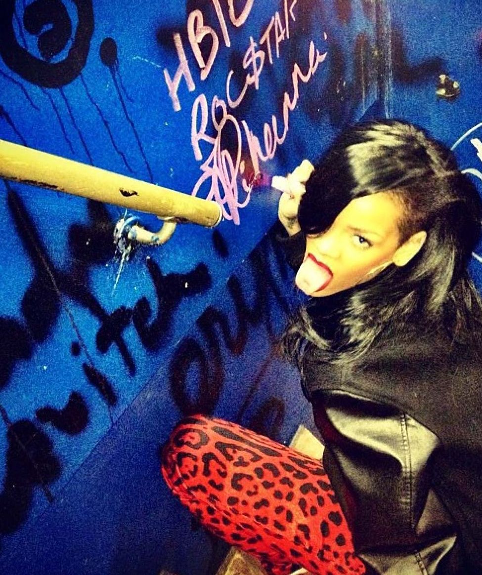 И надо сказать, играть эту роль у нее с каждым днем получается все натуральнее. На днях певица вновь  сменила имидж. Рианна вернула своим волосам глобальный черный цвет. Об этом девушка написала в своем микроблоге и тут же подтвердила эту информацию новыми фото, некоторые из которых весьма компрометирующего содержания: на одних снимках девушка курит, на других - пьет спиртное прямо из горла бутылки... "Я снова черная, б***" - подписала фотографии Рианна.