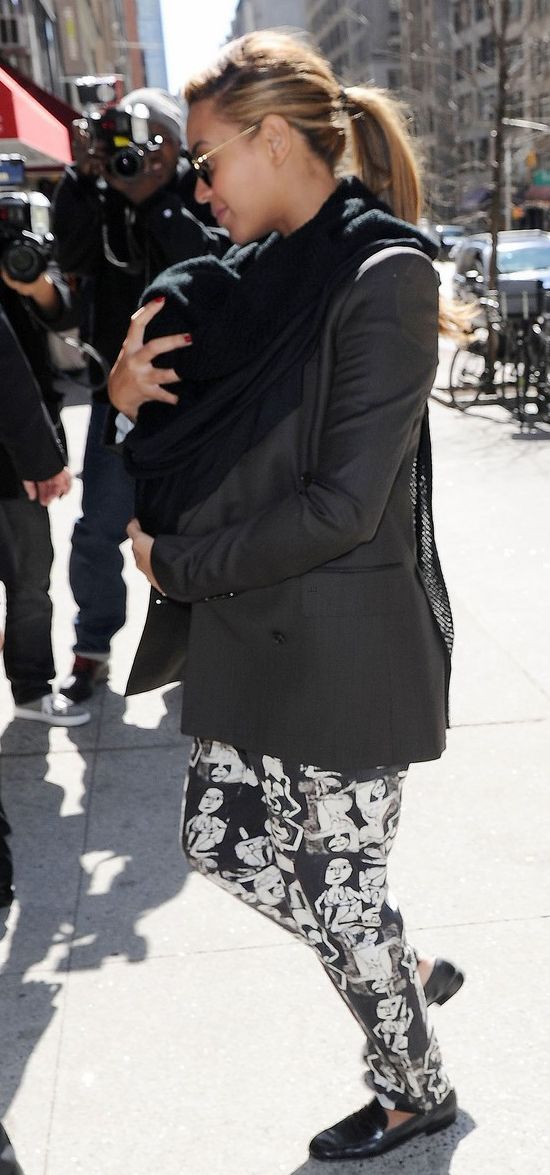 Известная модница Бейонсе, с появлением в ее жизни ребенка кардинально изменилась. Би старается ни на минуту не расставаться со своей маленькой дочерью и всюду носит ее с собой в слинге. При этом девушка, похоже, сказала окончательное "прощай" обтягивающим нарядам и высоким каблукам, в которых ходила, даже находясь на последних месяцах беременности.