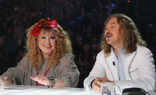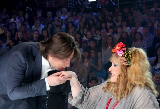 Алла Борисовна не изменила любимым "балахонным" силуэтам, выбрав максимально комфортный наряд из легкого жатого батиста с супермодным асимметричным подолом. Наряд судья "Фактора А" дополнила яркими колготками, остающиеся на пике модного олимпа, бусами в тон, крупным браслетом и - смело даже для такой модницы - цветами в волосах.