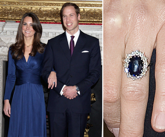 В ноябре 2010 года принц Уильям и Кейт Миддлтон официально объявили о своей помолвке. Уильям подарил Кейт обручальное кольцо своей матери, покойной Принцессы Дианы с 18-каратным синим сапфиром и белыми бриллиантами.