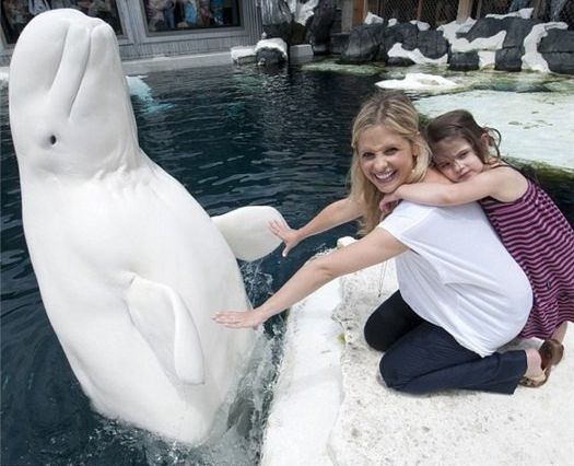 К примеру, Сара Мишель Геллар, которая через несколько месяцев станет мамой во второй раз, приобщает старшую дочь к природе. На днях актриса опубликовала в своем микроблоге фото с малышкой, которые были сделаны в океанариуме. Там актриса с дочерью не только вволю насмотрелись на диковинных рыб, но и подружились с белым дельфином.
