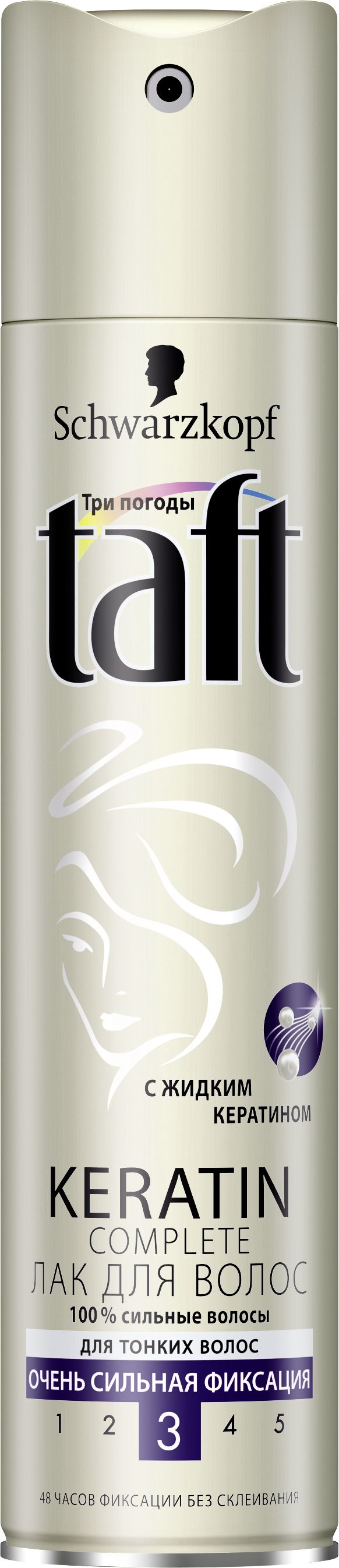 Новое средство не просто защитит тонкие волосы от ветра, влажности и воздействия вредных УФ-лучей, но и придаст им 100% силы для очень сильной фиксации на 48 часов без склеивания и утяжеления. Лак Taft KERATIN Complete создает эффектный объем у корней и наполняет волосы роскошным здоровым блеском, предотвращая их пересушивание.