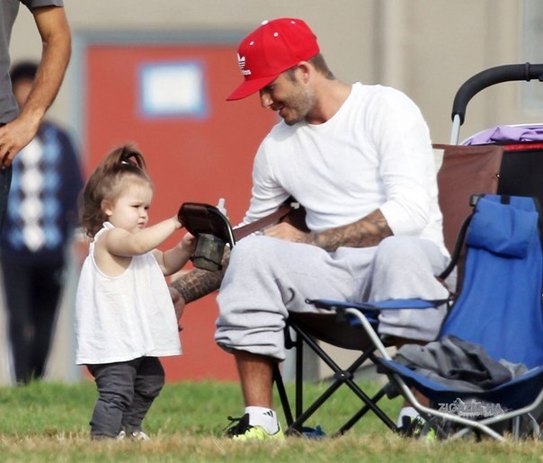 Пока Виктория Бекхэм посещает модные показы, разрываясь между Америкой и Европой, ее знаменитый супруг всего себя посвящает детям. К примеру, на днях, его видели на прогулке с младшей дочерью, Харпер Севен. По словам очевидцев, папа что-то очень обстоятельно рассказывал своей малышке, а она внимательно его слушала, периодически перебивая Дэвида своим забавным детским лепетом. Посетители парка, в котором футболист гулял с Харпер с улыбкой наблюдали, с каким обожанием папа и дочь смотрят друг на друга. Вдоволь о чем-то наговорившись, Дэвид начал подбрасывать дочь у себя над головой, а она восторженно визжала.