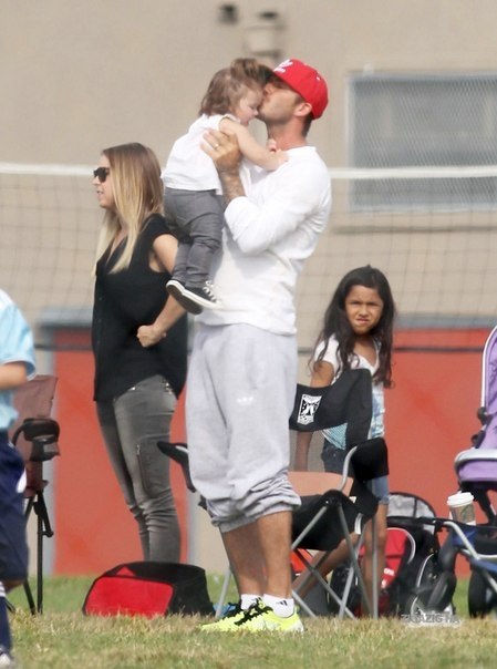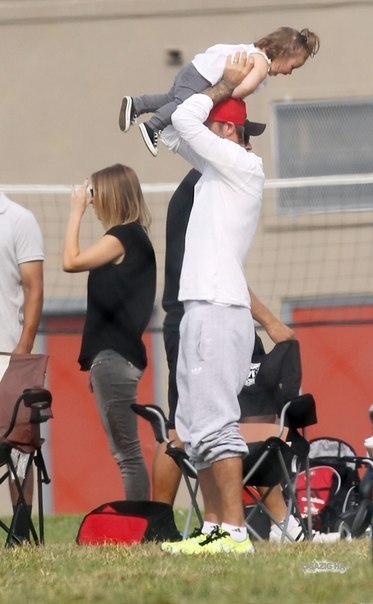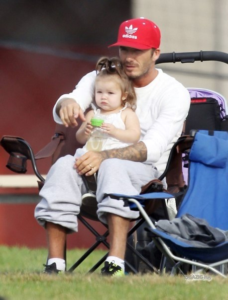К слову, сразу видно, что на прогулку Харпер собирал папа. Виктория, как правило, наряжает дочь в платья и туфельки. Однако на сей раз, на малышке были брючки и маленькие детские кеды. Сразу видно - дочь спортсмена.