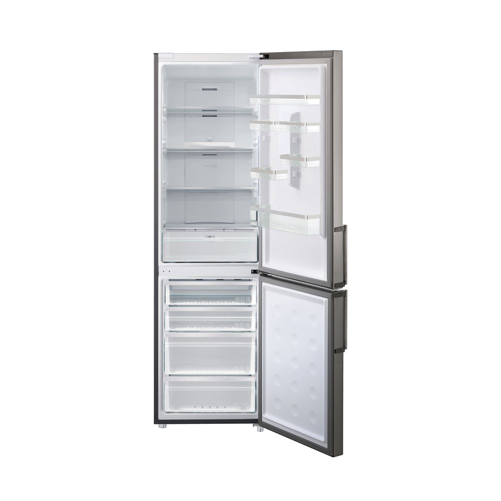 Корпус модели имеет броскую расцветку «Нержавеющая сталь», поэтому будет смотреться уместно на любой современной кухне, независимо от цвета интерьера. На дверцах их «нержавейки» практически не заметны следы рук. К услугам пользователя современная электронная панель управления и голубой LED-экран, отображающий текущие значения температур в холодильной и морозильной камерах. Этот яркий LED-экран делает и без того эффектную внешность устройства еще футуристичнее.