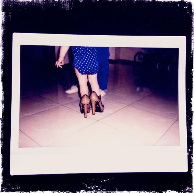 Поп-звезда опубликовала на своей странице в социальной сети Facebook несколько фотографий малышки Евангелины в маминых туфлях на каблуках.