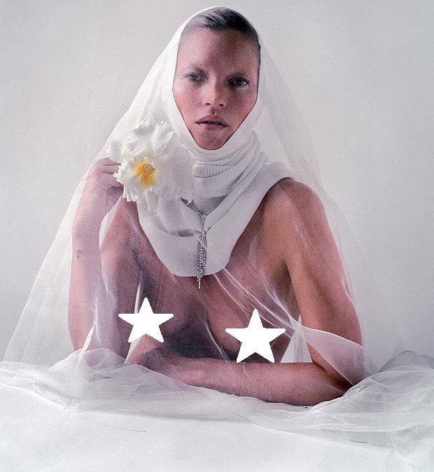 38-летняя суперзвезда предстала на страницах нового номера журнала LOVE топлесс, а на шее модели красовалось дорогостоящее бриллиантовое колье. Идея откровенной фотосессии с участием Кейт принадлежит редактору журнала Кэти Гранд.