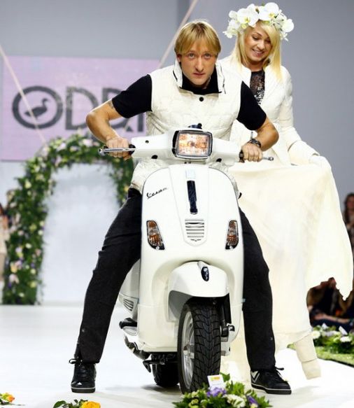 Яна, которая находится на восьмом месяце беременности, совместно со своим мужем, фигуристом и олимпийским чемпионом Евгением Плющенко представила коллекцию пуховиков Odri, в финале выехав на подиум на настоящем мотоцикле.