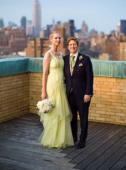 Как только в штате Нью-Йорк узаконили однополые браки, звезда «Секса в большом городе» Синтия Никсон и ее давняя возлюбленная Кристин Маринони отправились под венец. Пара, которая объявила о помолвке в 2009 году, сыграла скромную свадебную церемонию в узком кругу друзей. Для долгожданной свадьбы невеста Синтия выбрала платье оливково-желтого цвета от Carolina Herrera, в то время как ее супруга была облачена в классический темно-синий смокинг.