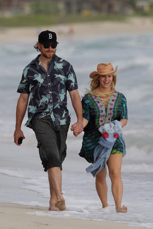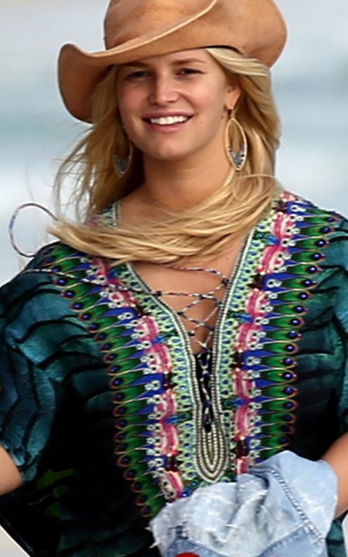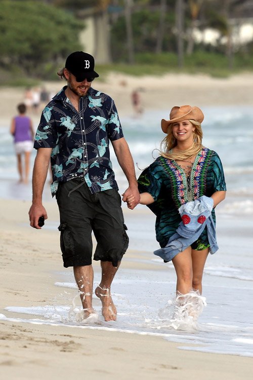 Папарацци сфотографировали звезду «Весонаблюдателей» во время прогулки по гавайскому пляжу с супругом Эриком Джонсоном. 32-летняя Джессика выглядела счастливой и расслабленной, позируя папарацци без макияжа и прикрывая свой округлившийся животик.
