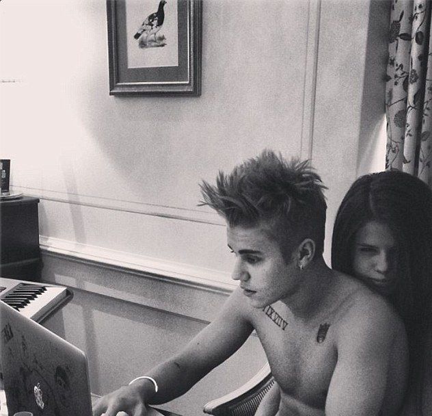 19-летний артист поделился с поклонниками личным снимком, на котором изображен со своей возлюбленной, диснеевской звездой Селеной Гомес. На фото Джастин с голым торсом сидит за ноутбуком, а очаровательная Селена нежно обнимает обнаженного бойфренда.