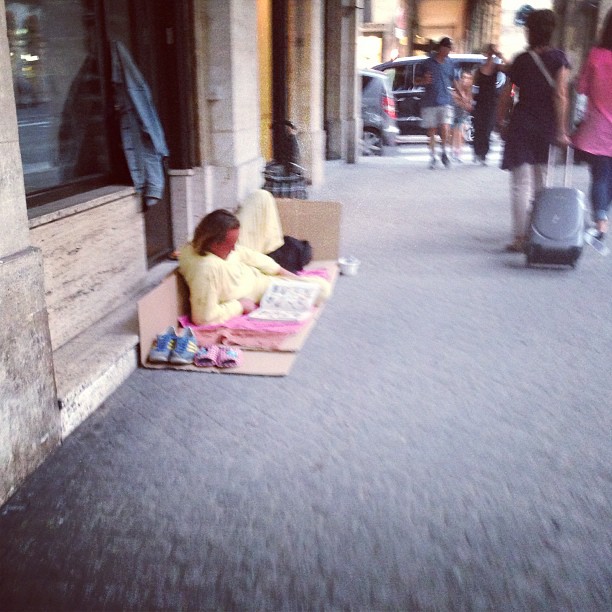 «Париж. Интеллигентный бомж. Тапочки, пижама, читает перед сном»