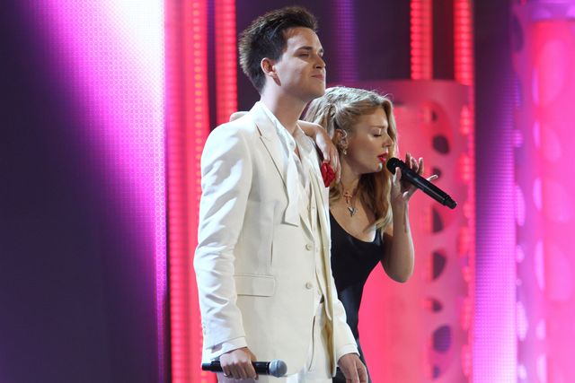 В рамках второго конкурсного дня «Новой волны 2013» на сцене в «Дзинтари» конкурсанты выступали дуэтом с известными исполнителями. Так, наш Аркадий Войтюк создал потрясающий тандем с красавицей Тиной Кароль. Звезды невероятно чувственно исполнили романтическую песню из репертуара Тины - «Ніжно».