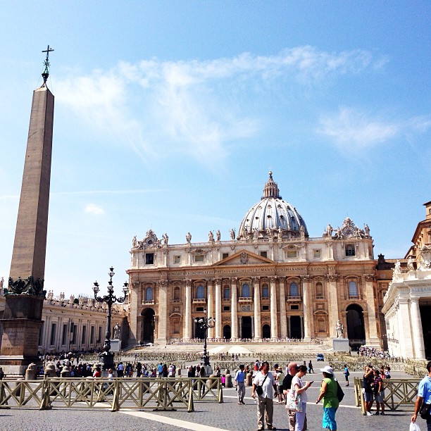 "Собор Св. Петра в Ватикане. Внутри - красивей в мире я не видела! Возмутило обилие громких и хамоватых туристов. В основном русские и итальянцы. Зато, когда у монахини не было сдачи с крупной купюры, нам отдали платок всего за 1,20€ (1/3 его стоимости(!)"