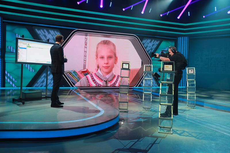 Девочка появилась в студии во время анонса сюжета о школе будущего - бесспорно, Алла унаследовала "телевизионный" талант от своего отца и отлично держалась перед камерой.