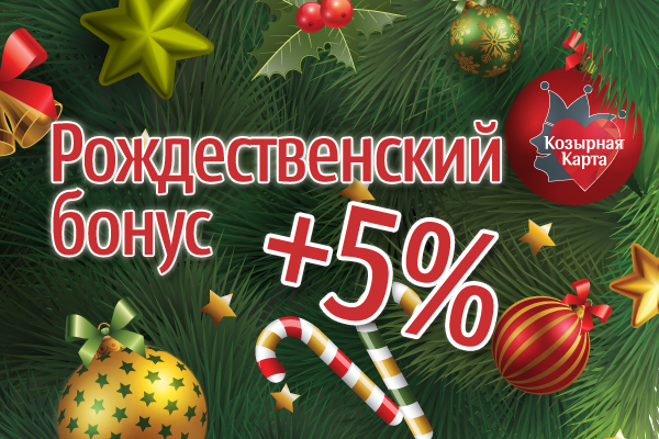 Скидки не суммируются. Рождественский бонус распространяется на дисконтные Козырные карты номиналом 10%, 15% и 20%.