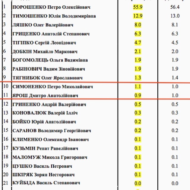 «Просто распечатайте этот список. И каждый раз, слыша заклинания Киселева, Соловьева и других политических проституток про «бандеровцев» и «фашистов» Украины, смотрите, какое место на демократических выборах они заняли.То есть Ярош примерно так же «влиятелен» в Украине, как у нас Тесак. Что и требовалось доказать», - написала Собчак в Инстаграме, опубликовав реальные результаты голосования.