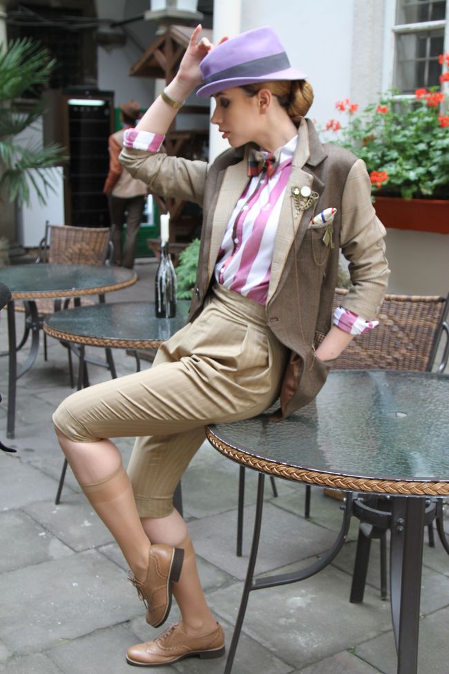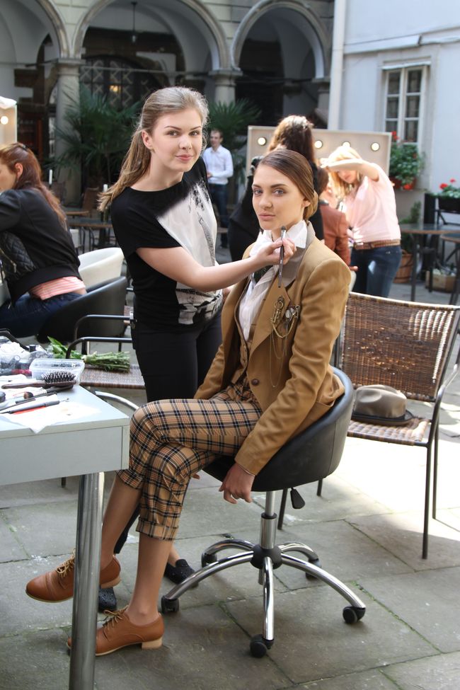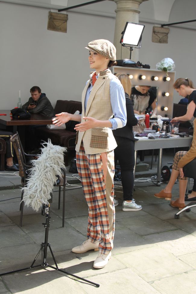 В это же время съемочная группа вместе с гримерами и костюмерами уже ждала участниц в итальянском дворике. И когда Алла озвучила задание – моделям предстояло выступить в мужских образах, но при этом сохранить женственность – работа пошла полным ходом. Девушек стали готовить к дефиле. На протяжении нескольких часов им делали макияж, одевали и причесывали. Основу образов составили узкие брюки, стильные рубашки, жилетки и пиджаки. Штиблеты, бабочки и шляпы дополняли их.