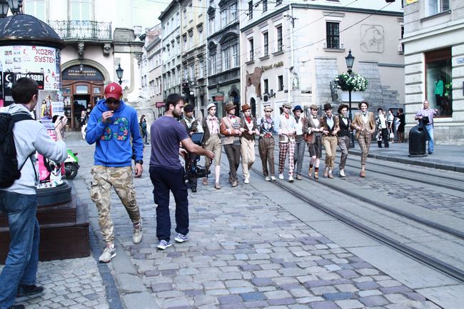 Вместе со своими новыми друзьями участницы быстро прибыли на площадь Рынок. Здесь перфоманс продолжился. Девушки повторяли движения батяр, манеры, слова. А уже через некоторое время настолько вжились в образы, что перестали обращать внимание на окружающих. Вместе с батярами беседовали на разные темы, танцевали и даже дефилировали.