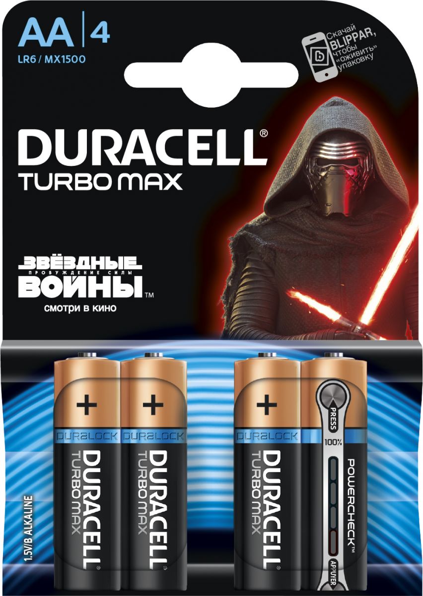 Весь мир замер в ожидании выхода седьмого эпизода давно знакомой истории. И только Duracell, официальный партнер фильма «Звездные войны: Пробуждение силы», не останавливается ни на секунду – специально к этому событию он выпустил лимитированную серию коллекционных пачек батареек TurboMax. На упаковках серии изображены персонажи Эпизода VII: как хорошо знакомые C-3PO, R2D2, Штурмовик, так и новые – темный воин Кайло Рен и робот BB-8.