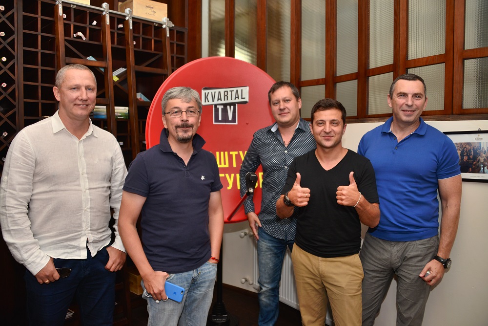 Директор департамента дистрибуции и развития сети вещания 1+1 медиа Андрей Мальчевский , генеральный директор 1+1 медиа Александр Ткаченко , программный директор канала «Квартал ТВ» Руслан Осадчий, художественный руководитель студии «Квартал 95» Владимир Зеленский, директор канала «Квартал ТВ» Сергей Шефир