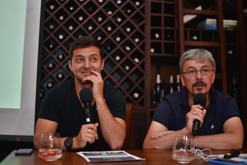 Владимир Зеленский, художественный руководитель студии «Квартал 95» и генеральный директор 1+1 медиа Александр Ткаченко сегодня объявили о запуске совместного проекта студии «Квартал 95» и «1+1 Медиа» – нового развлекательного юмористического канала «Квартал ТВ». Владимир был в хорошем расположении духа и признался журналистам, что этот канал он будет разрешать смотреть сутки напролет даже своим детям.