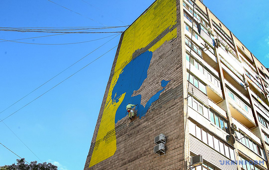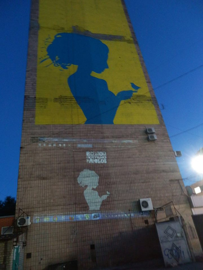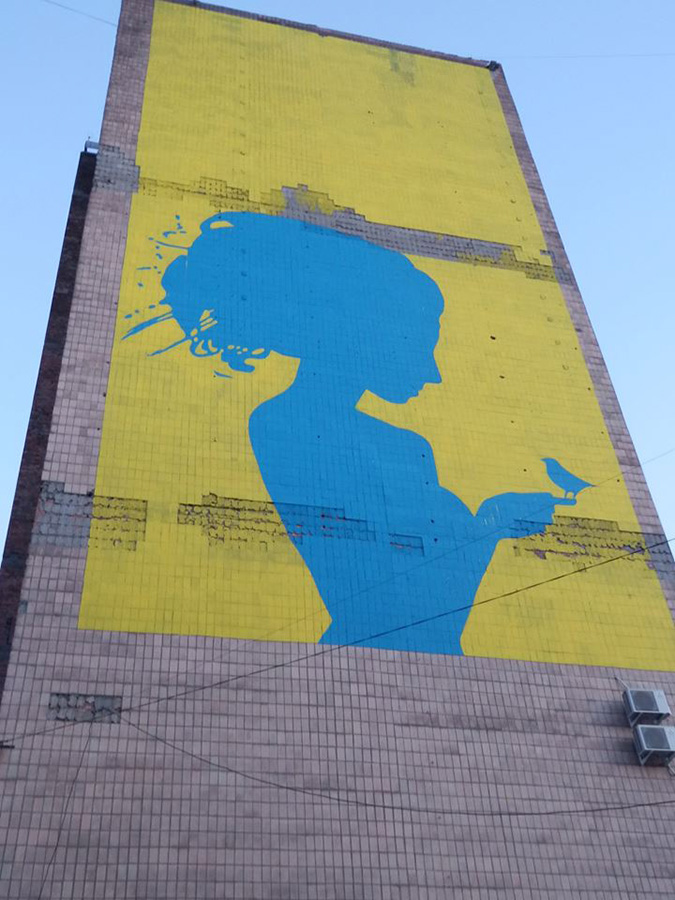 “Ми вирішили зробити місто хоч трохи яскравішим, — рассказывает один из организаторов проекта в Запорожье. — Малюнок для нанесення обирали голосуванням у соціальних мережах, в якому брали участь жителі Запоріжжя. Запропонували на вибір 7 ескізів Миколи Гончарова. Переможцем голосування став малюнок “Дівчина з пташкою”.