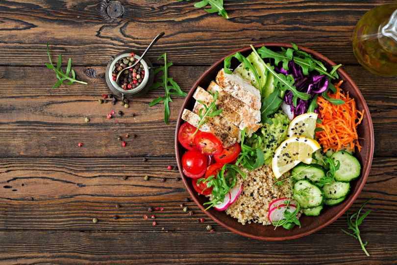 – обов'язковим інгредієнтом є корисні жири: оливкова олія, волоські і інші горіхи (якими можна зверху посипати овочі), авокадо, насіння (лляне, кунжутне). Жири дають відчуття тривалої ситості, не буде бажання чимось перекусити.