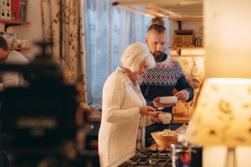 «На знімальному майданчику панувала надзвичайно затишна і доброзичлива атмосфера. Коли я піднімалась сходами будинку — наш фуд-стиліт якраз смажив на пательні котлетки, їх аромат заполонив увесь простір. На столі стояли вже приготовані страви, для настрою ми тихесенько увімкнули якусь новорічну фонову музику, потріскував камін і було таке відчуття, неначе ми насправді зібралися не для зйомок, а щоб відсвяткувати Різдво у колі найближчих людей. — розповідає промодиректорка телеканалу СТБ Наталя Проценко. — Наші зірки дуже тепло підтримували пані Марію, яка стала головною героїнею ролика. Ми розуміли, що їй може бути складно зніматися, адже це довгий процес, велика кількість людей і багато задач від режисера. Тому в перервах між дублями було живе спілкування, жарти, щирі розмови і життєві історії, якими пані Марія ділилася з зірками. Це була справжня турбота і тепло не тільки в кадрі, а й поза ним. Хоча ми і знімали міні кіно, в той день на майданчику ми прожили справжнє життя».