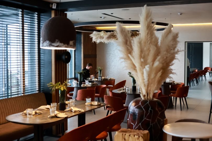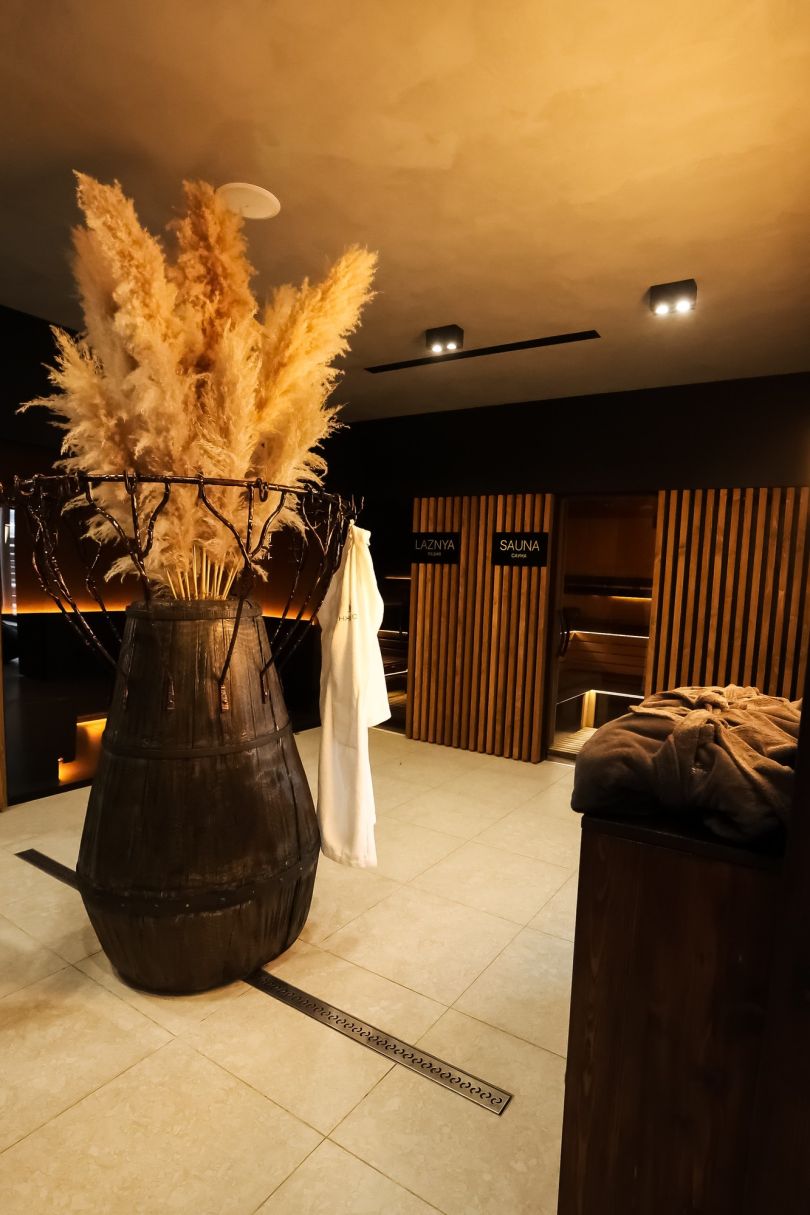 Ресторан SAZHA – це справжня гордість готелю. Витончений дизайн з неймовірним декором в українському стилі з використанням природного каменю, кераміки, дерева, натурального текстилю, справжніх колосків пшениці, польових та гірських трав занурює в атмосферу природи та легкості.