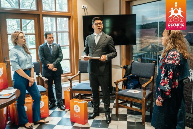 Бургомістр Olaf Prinsen, перший секретар Посольства України в Нідерландах Євген Довженко та СЕО проєкту Olympic Dreams Олександра Новікова