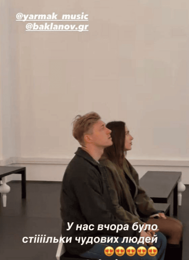 Піарниця Ярослава Гресь розмістила на своїй сторінці в інстаграмі фото, на якому позувала з Баклановим та його ймовірною обраницею. Також біля них стояв виконавець Yarmak з дружиною Анною. Вони зустрілися на виставці Ukraine WOW.