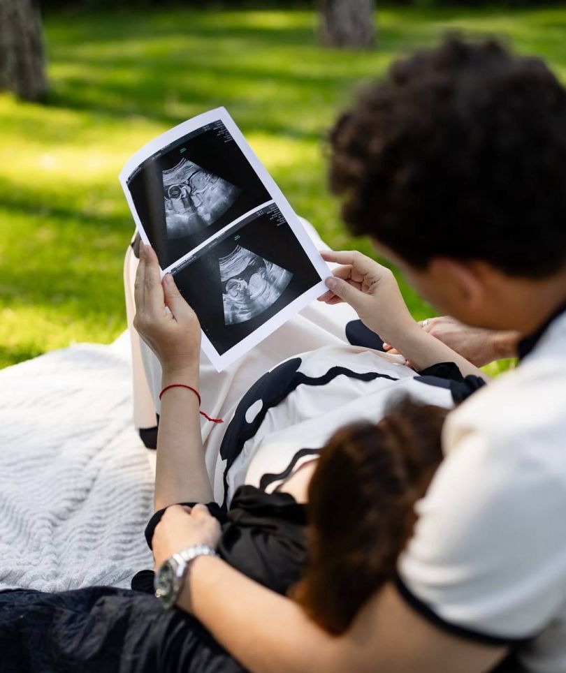 Євген опублікував кілька світлин, на яких позує з вагітною дружиною. На одному з кадрів подружжя розглядало знімок УЗД, але наразі не повідомило, якою буде стать дитини.