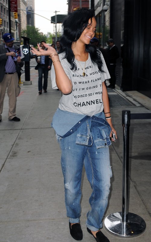 Популярная певица появилась в Нью-Йорке в стильном джинсовом комбинезоне, фирменной футболке и без макияжа. Рианна, которая уже который год продолжает возглавлять рейтинги самых сексуальных женщин планеты, продемонстрировала свою естественную красоту и с удовольствием позировала папарацци.