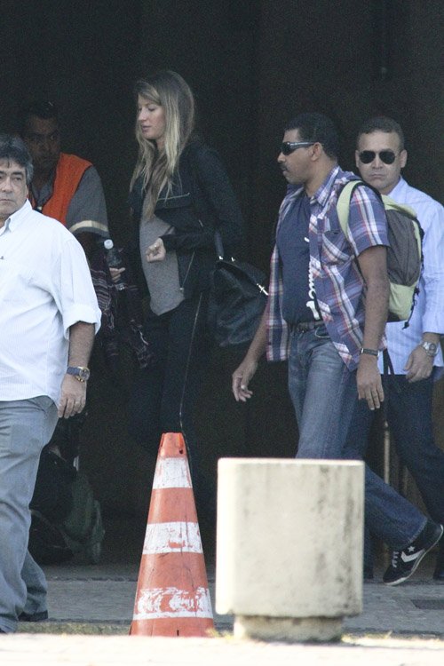 Папарацци удалось сделать несколько фотографий легендарной модели в аэропорту Рио-де-Жанейро. 31-летняя красотка, которая по-прежнему не подтвердила слухи о явной беременности, не смогла скрыть от публики свой округлившийся животик.