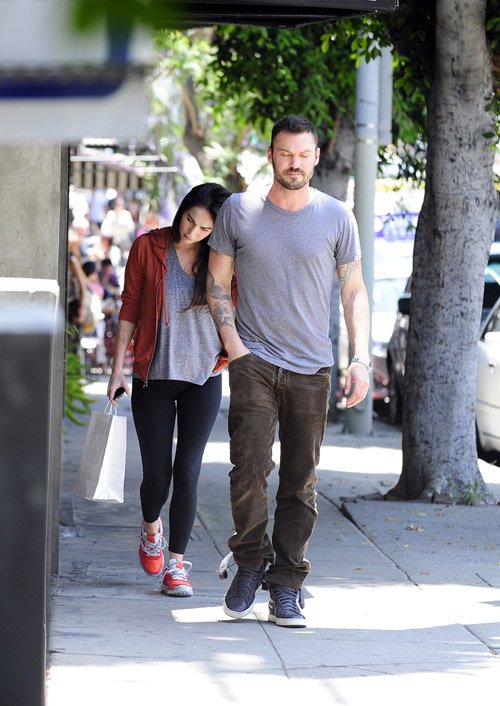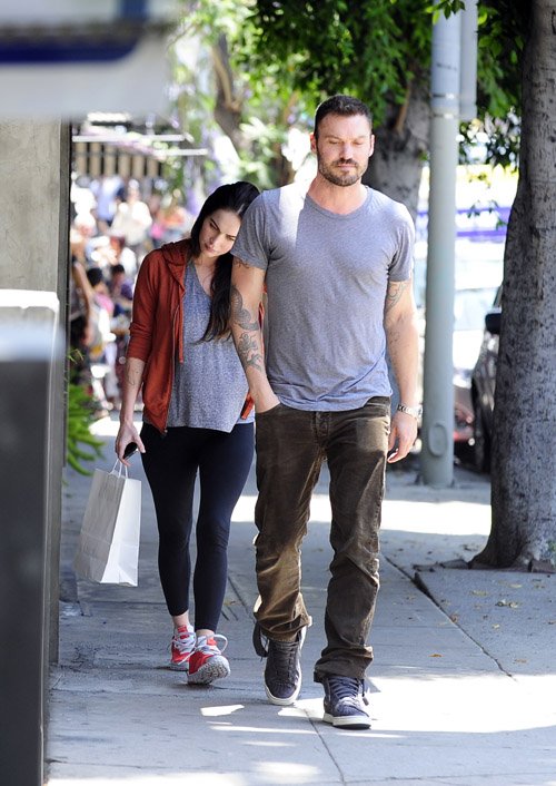 Звезду, которая по-прежнему не комментирует многочисленные слухи о беременности, сфотографировали в Калифорнии с супругом Брайаном Остин Грином. Скрыть от публики свое «интересное положение» Меган уже не смогла – под мешковатой майкой был отчетливо виден беременный живот актрисы.
