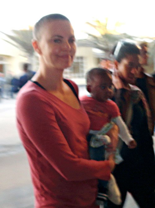 Шарлиз Терон впервые вышла в свет с обритой головой