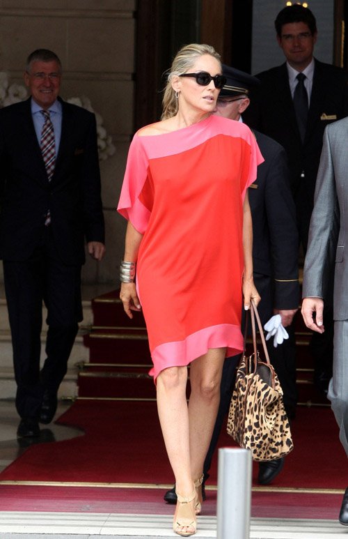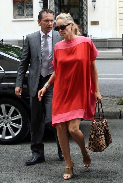 Популярная 54-летняя кинозвезда в минувшие выходные прогулялась по магазинам во Франции. Примечательно, что Шэрон решила отправиться на шопинг без нижнего белья в ярком кораллово-розовом платье, под которым просвещалась обнаженная грудь актрисы.
