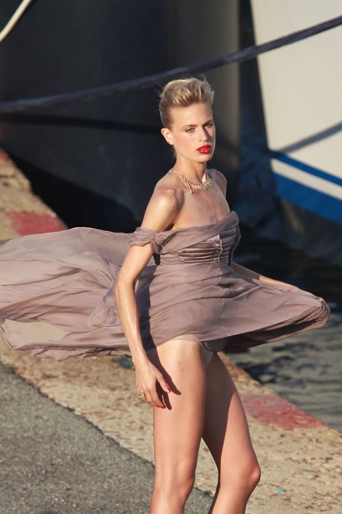 28-летняя чешская супермодель была сфотографирована на съемках нового фото-сета в роскошном летнем платье. Откровенный образ Каролины подчеркнула красная помада, а также легкая юбка платья, которая развивалась на ветру и открывала взору публики длинные стройные ноги модели.