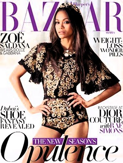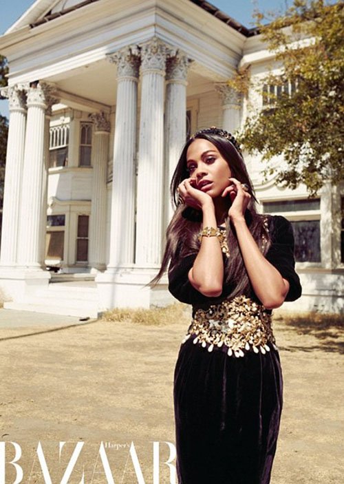 Американская актриса Зои Салдана, известная ролью Нейтири в фильме «Аватар», снялась в гламурной фотосессии для арабской версии журнала Harper's Bazaar.