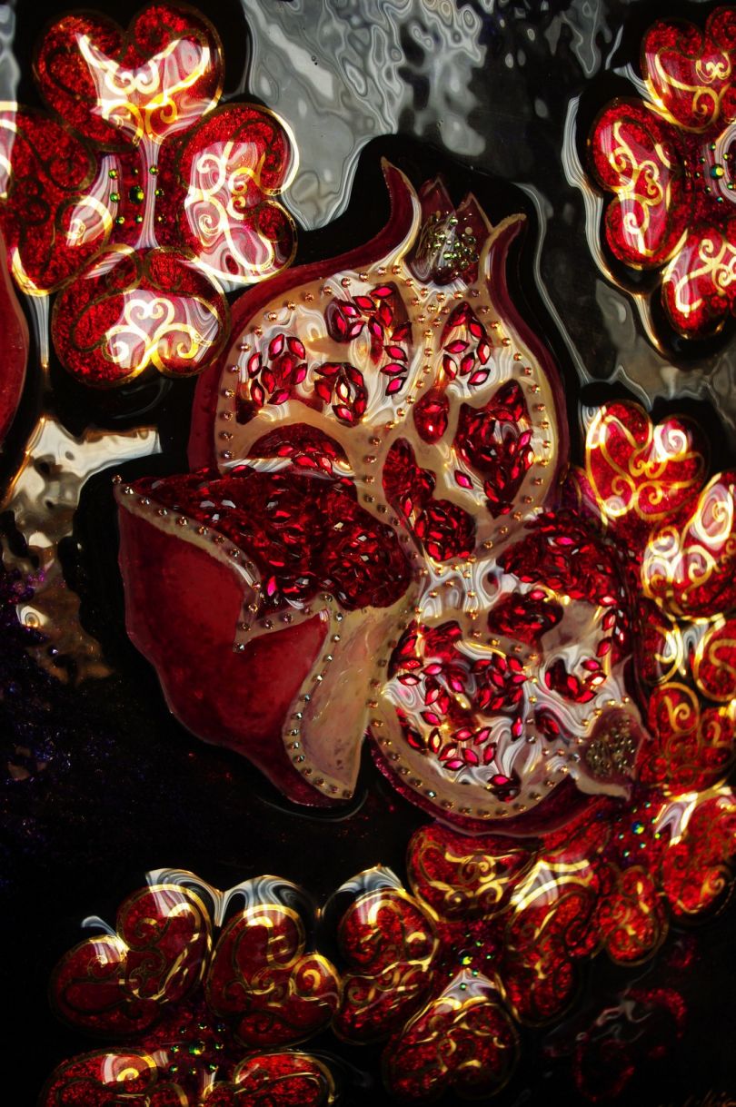Так что в экспозиции зрителя ждет разнообразие любимых автором природных мотивов: экзотические птицы с переливающимися хвостами от дуновения ветра, цветы и травы, загадочные обитатели подводного царства, феерические медузы, коралловые рифы, рыбы и удивительные черепахи. Художница обращает наше внимание на изящество и в то же время хрупкость, уязвимость природы и желает, чтобы мы сместили фокус с самих себя и увидели ту необъятную роскошь, дарованную нам Богом для разумного управления и гармоничной жизни.