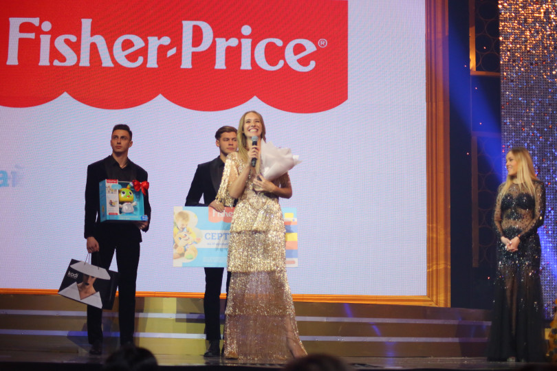 Уже традиционной номинацией «Мама года» была награждена Катя Осадчая, которой статуэтку на сцене Дворца «Украина» вручила прошлогодняя победительница Alyosha.