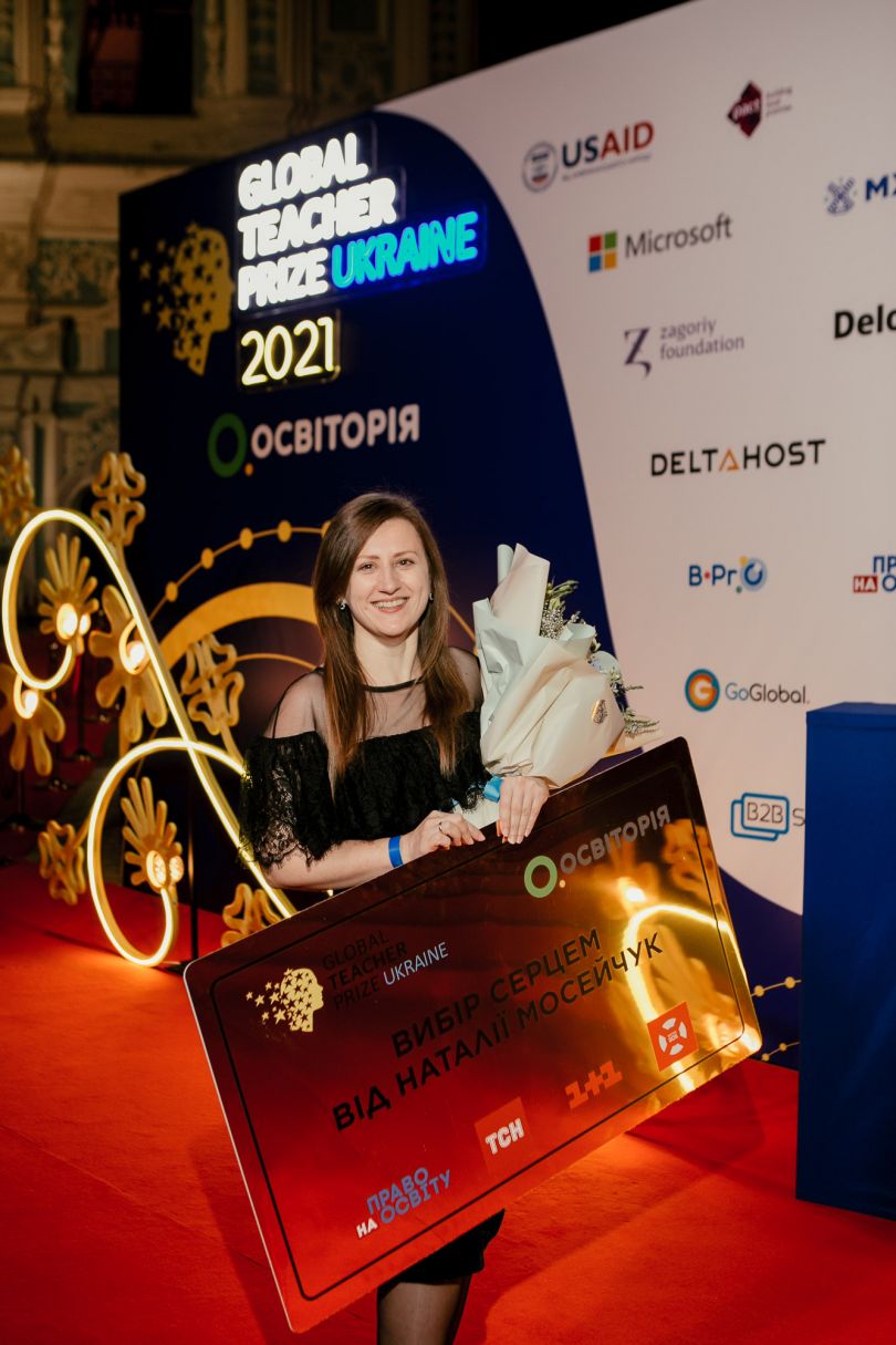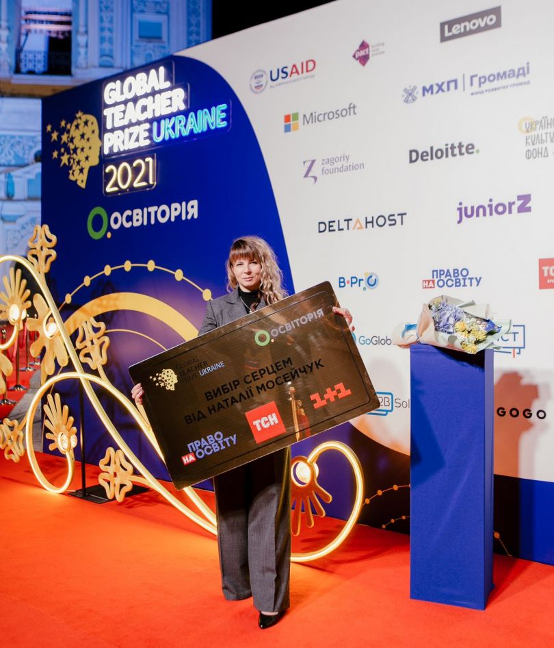 У суботу, 2 жовтня, в історичному центрі Києва, на Софійській площі відбувся грандіозний фінал п’ятої ювілейної Всеукраїнської премії Global Teacher Prize Ukraine, де оголосили найкращого вчителя України 2021 року та імена вчителів-переможців у інших восьми номінаціях. Наталія Мосейчук, ведуча 1+1 та незмінна кураторка впродовж всіх років премії і зараз уже вп’яте традиційно відзначила двох вчителів з великим серцем – вони працюють з особливими учнями, які потребують турботи, тепла та підтримки.