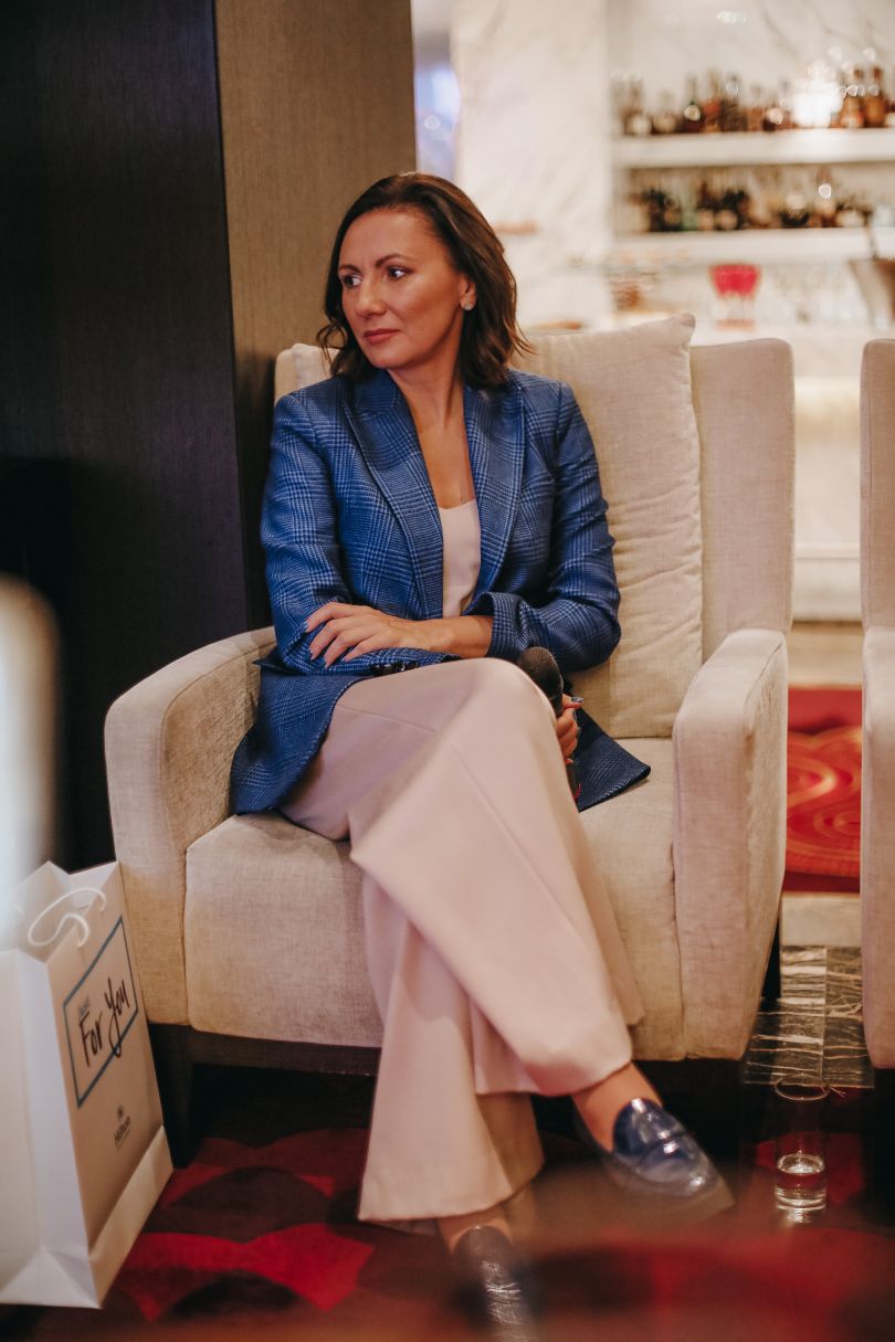 «Ты женщина перемен и женщина, которая идет за своим творческим посылом. Это настолько нам всем сегодня нужно, поэтому я тебя прошу поделиться этим состоянием, чтобы каждая из нас смогла тоже взять этот ресурс», — обратилась к главной героине бранча Инна Катющенко.