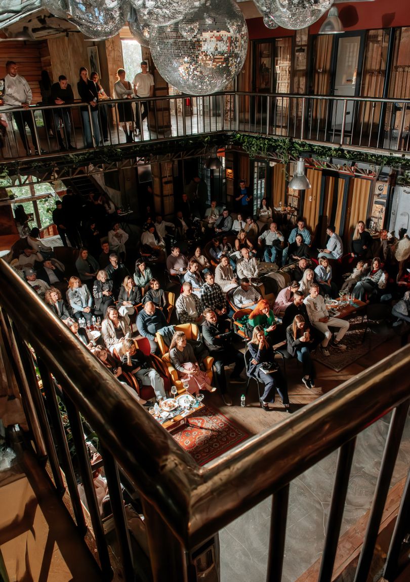 Зал со свечами, приглушённый свет и камерная атмосфера способствовали искреннему разговору о непростом жизненном пути, который Фостенко условно разделил на три части: детство в условиях бедности, поиски себя в бизнесе и переосмысление семейных ценностей.
