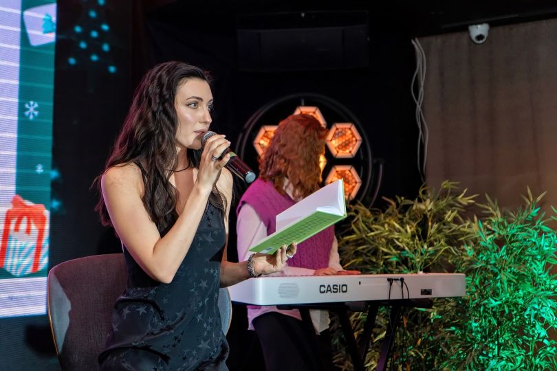 Культурные инфлюэнсеры читали поэзию из сборников серии «Книга LOVE» под клавишный аккомпанемент певицы Голубка и конферанс Екатерины Сташко. К чтениям присоединились актёр театра и кино Максим Самчик, певица и блогер Olya Schelby, телеведущая программы «Факты» на ICTV Оксана Гутцайт.